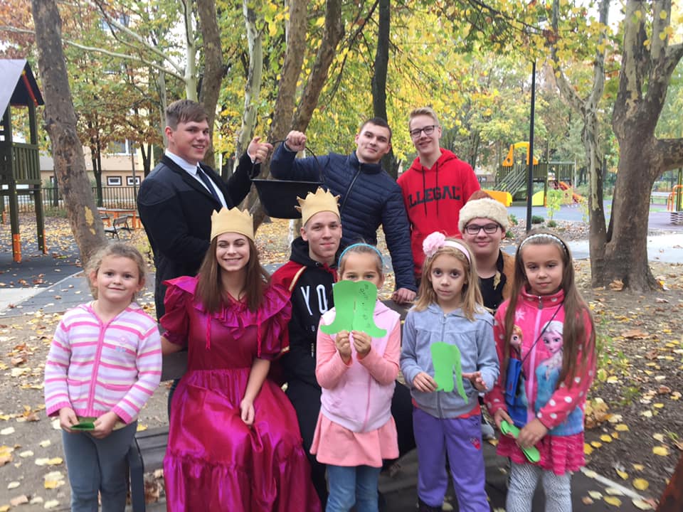 Az Eötvös Gimnázium 10/B osztálya, Tóth Réka osztályfőnök segítségével, remek hangulatú óvodás program szervezésével oldotta meg a középiskolások számára kötelező közösségi munkát. Az előkészületek már jócskán visszanyúlnak fél évre, amikor az óvodai tehetségműhely-vezetők ötletéhez igazítva mesei hétpróba összeállításába fogtak a gimnazisták. Tanácskozások, megbeszélések, mesék felelevenítése, kreatív gondolkodás, élménypedagógiai elemek gyűjtése után forgatókönyvírás, eszközkészítés következett.