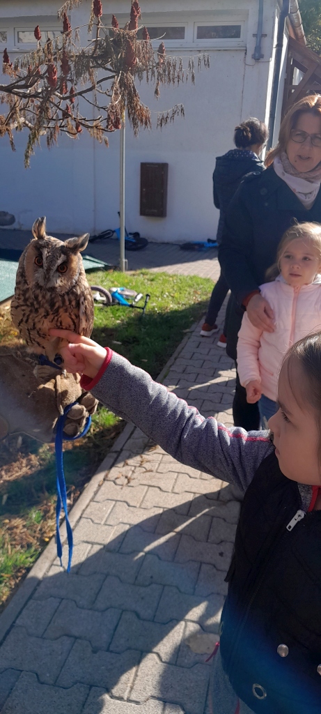 Mályi Természetvédelmi Egyesület, Madármentő Állomás dolgozói és kedvenc madarai látogattak el hozzánk. Állatok életmódjáról, tulajdonságaikról kaptak a gyermekek információkat.