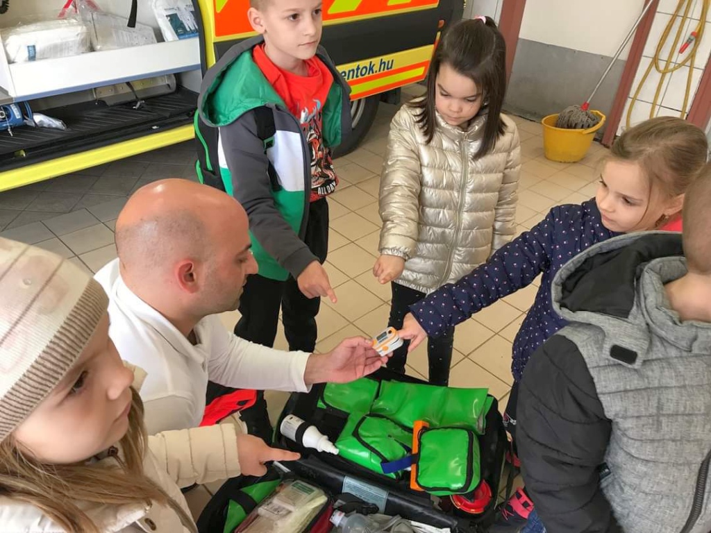 A Tiszaújvárosi Mentőállomásra látogattunk el, ami egy plusz élményt adott a gyerekeknek a segítségnyújtásról, a balesetvédelemről.
