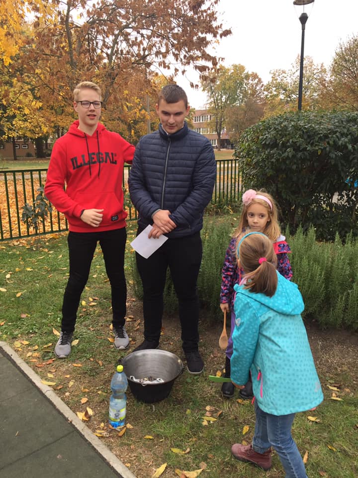 Az Eötvös Gimnázium 10/B osztálya, Tóth Réka osztályfőnök segítségével, remek hangulatú óvodás program szervezésével oldotta meg a középiskolások számára kötelező közösségi munkát. Az előkészületek már jócskán visszanyúlnak fél évre, amikor az óvodai tehetségműhely-vezetők ötletéhez igazítva mesei hétpróba összeállításába fogtak a gimnazisták. Tanácskozások, megbeszélések, mesék felelevenítése, kreatív gondolkodás, élménypedagógiai elemek gyűjtése után forgatókönyvírás, eszközkészítés következett.